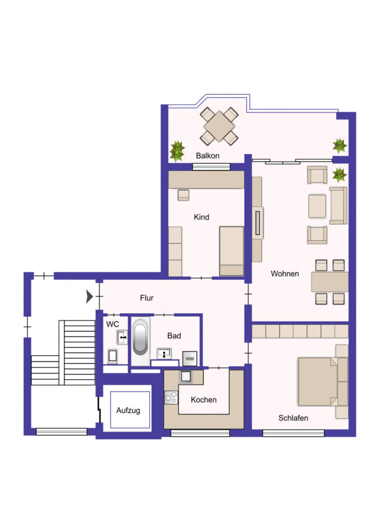 Die Wohnung ist über den Aufzug barrierefrei zu erreichen. Die Ausstattung der Wohnung ist sehr gepflegt.
