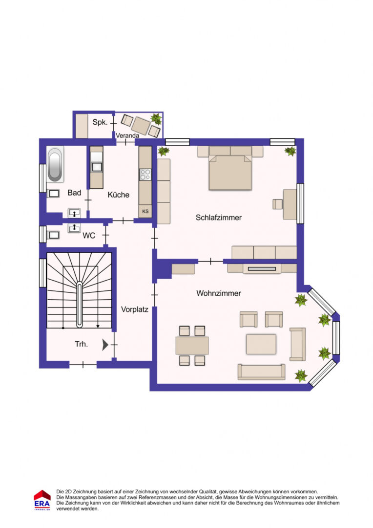 Sie betreten die Wohnung über einen Flur. Rechts davon befindet sich das helle großzügig und komplett eingerichtete Wohnzimmer mit schönem Erker und großer Fensterfront. Dahinter ist das modern eingerichtete Schlafzimmer.