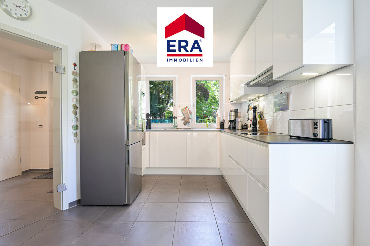 Die neue, top modernisierte Küche ist ein Highlight für jeden Hobbykoch. Sie ist mit hochwertigen NEFF Geräten ausgestattet und bietet ausreichend Platz für kulinarische Entfaltung. Von hier aus gelangen Sie direkt auf die Terrasse, die sich ideal für gesellige Abende oder entspannte Stunden im Freien eignet.